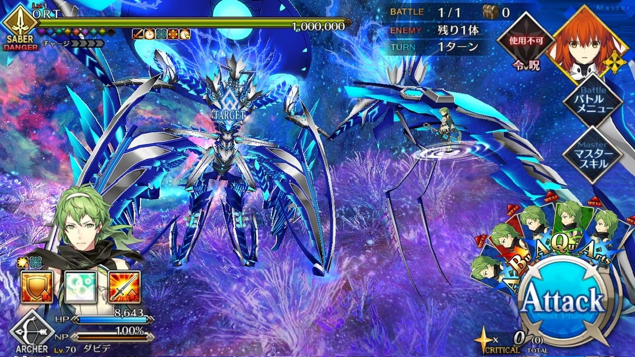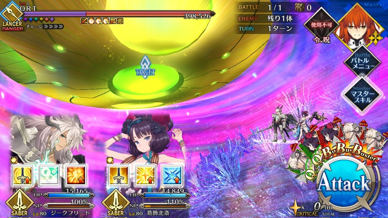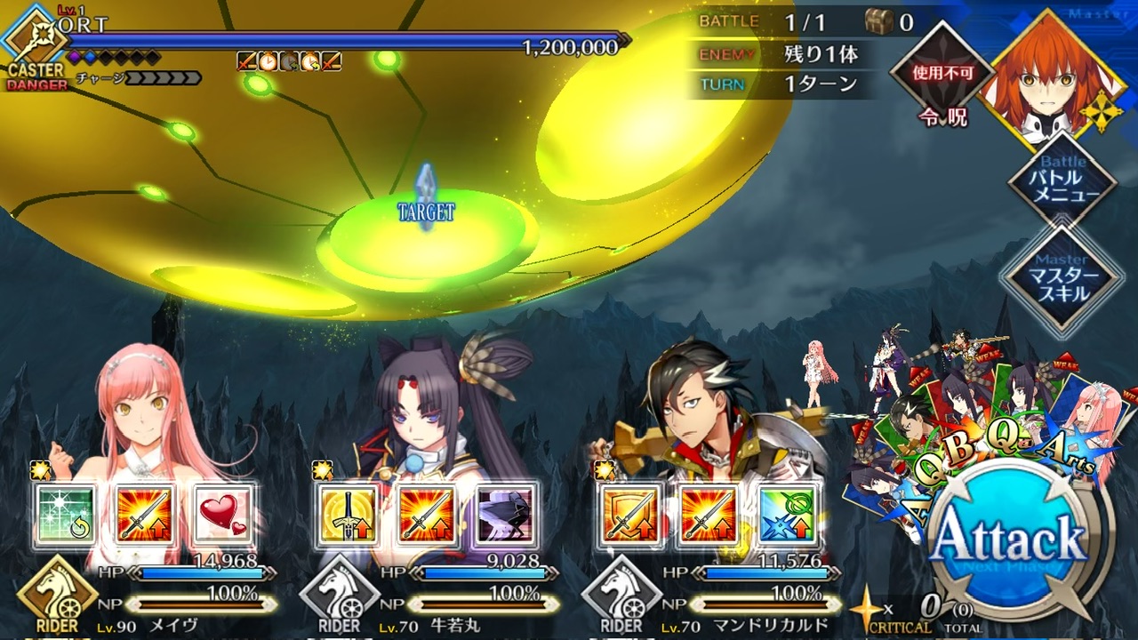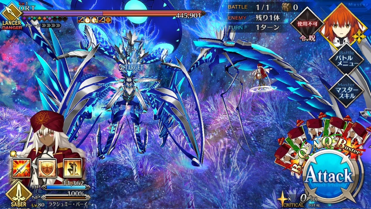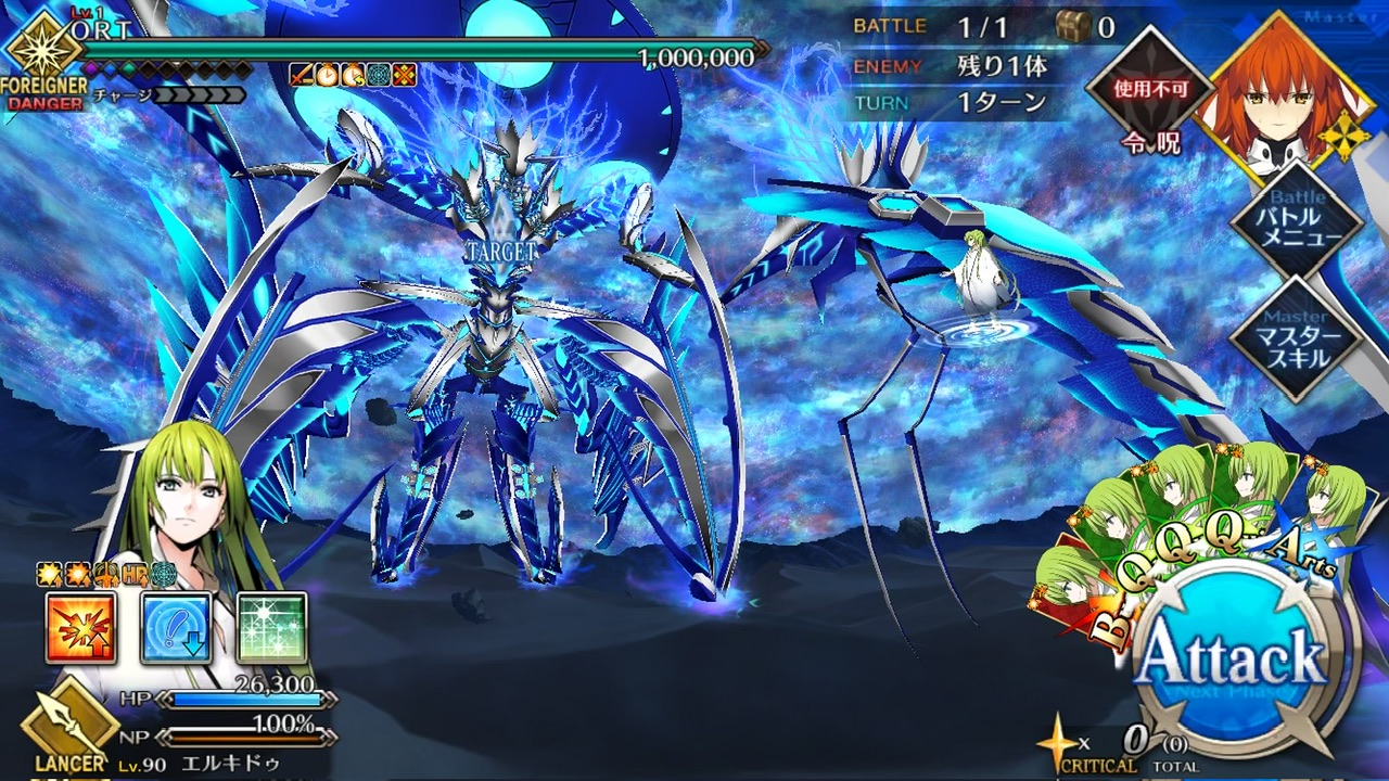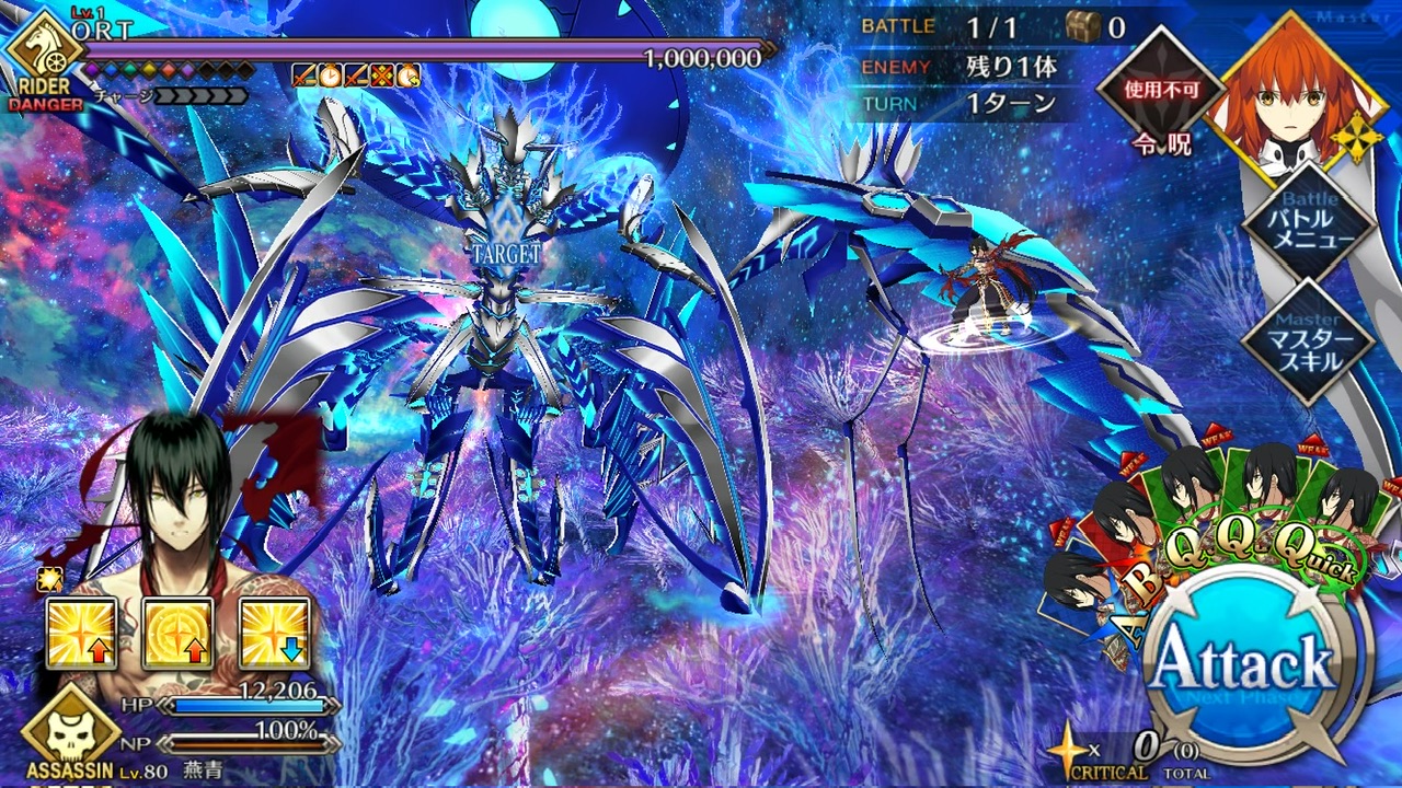 LOSTによる制限が無かったので恐らく手持ちの対ORT最強のサーヴァントを。NPC三騎がかなり削ってくれたり何だりで難無く4ターンで撃破できました💮