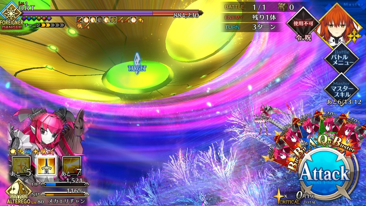 すごい、対ORT最強ライダーなのでは…!?(個人の感想です)耐久力にも驚きだけど、耐久した分宝具威力跳ねあがって本当にすごかった、、これハマったらやば❤︎