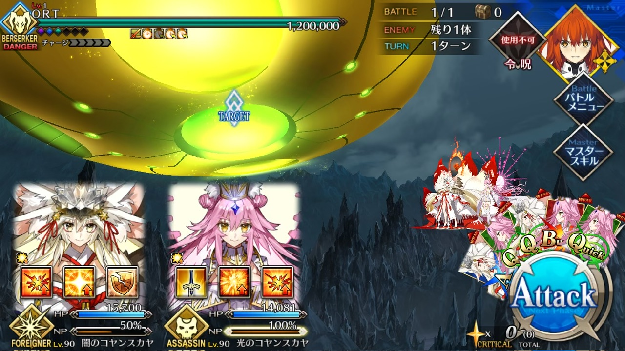 50万くらい削ってくだされば…と思っていたのに二騎で1ゲージ終わらせた!?!?やっぱコヤン最強サポーターはコヤンなんだー!♡全体宝具なのに闇コヤンチャン強すぎ、惚れ直しました。